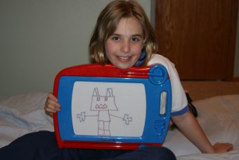 Bedroom When I came home from work, I couldn't believe my daughters room was a complete shambles. I told her that her room had better be cleaned when I cam home from work. I was ready to start dishing out the punishment when Grace told me that she had just finished cleaning her room when I giant robot cat kicked the door in and began to mess her room up. She even had the presence of mind to do a sketch of the robot so it could be passed on to the proper authorities. That is one smart kid! I think I am going to take her out for ice cream. |